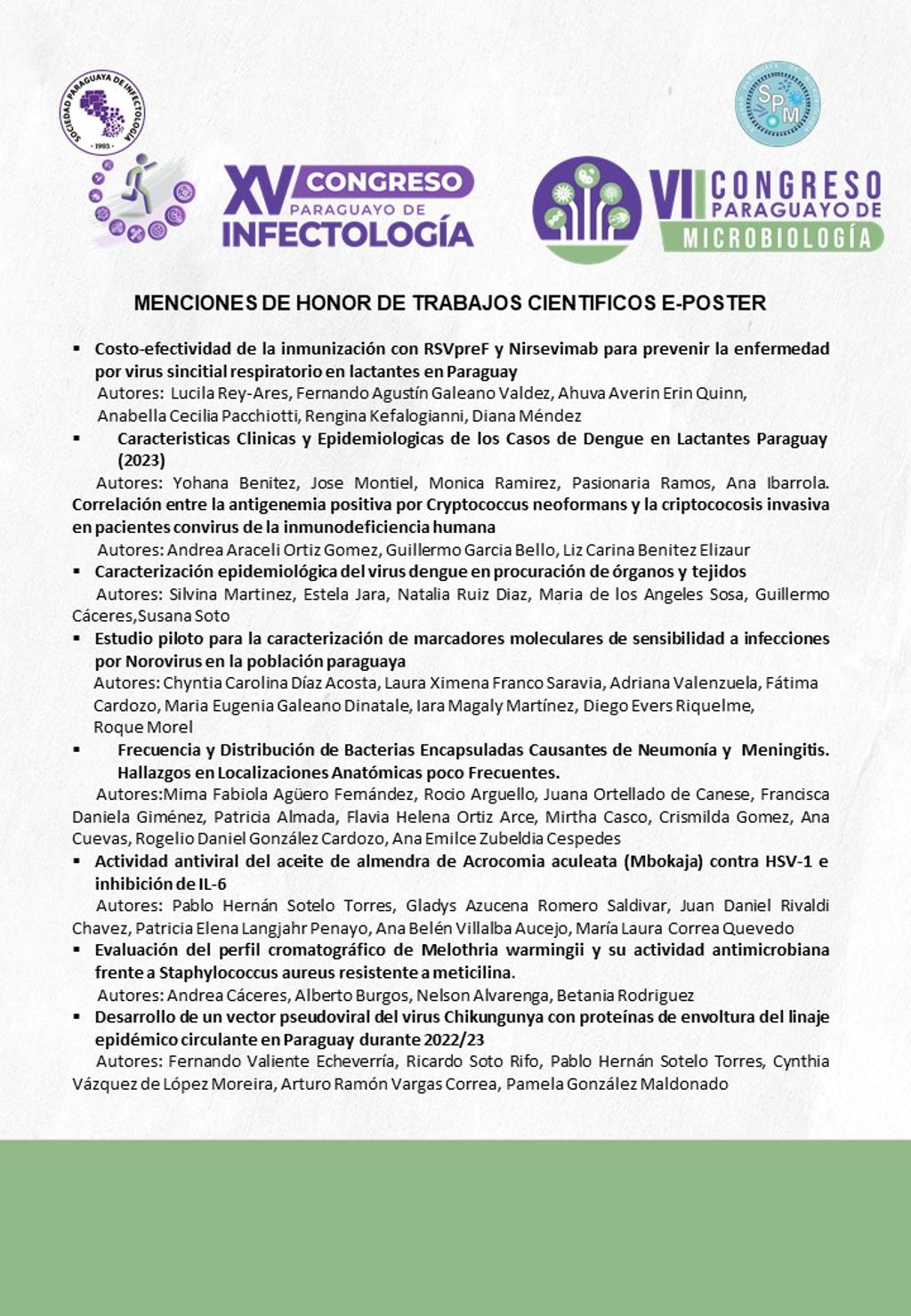 MENCIONES DE HONOR TRABAJOS CIENTÍFICOS E-POSTER